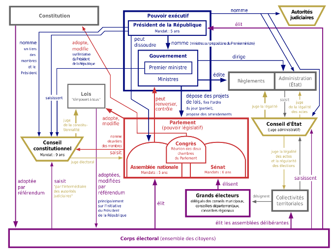 En France, l’exécutif est bicéphale (le pouvoir exécutif comporte deux « têtes »), c’est-à-dire un pouvoir politique partagé entre le président de la République et de l’autre le Premier ministre responsable devant le Parlement.