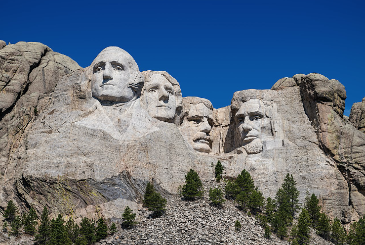 Mount Rushmore – A massive sculpture carved into the granite face of Mount Rushmore in the Black Hills region of South Dakota. It depicts the faces of four U.S. presidents: George Washington, Thomas Jefferson, Abraham Lincoln, and Theodore Roosevelt.